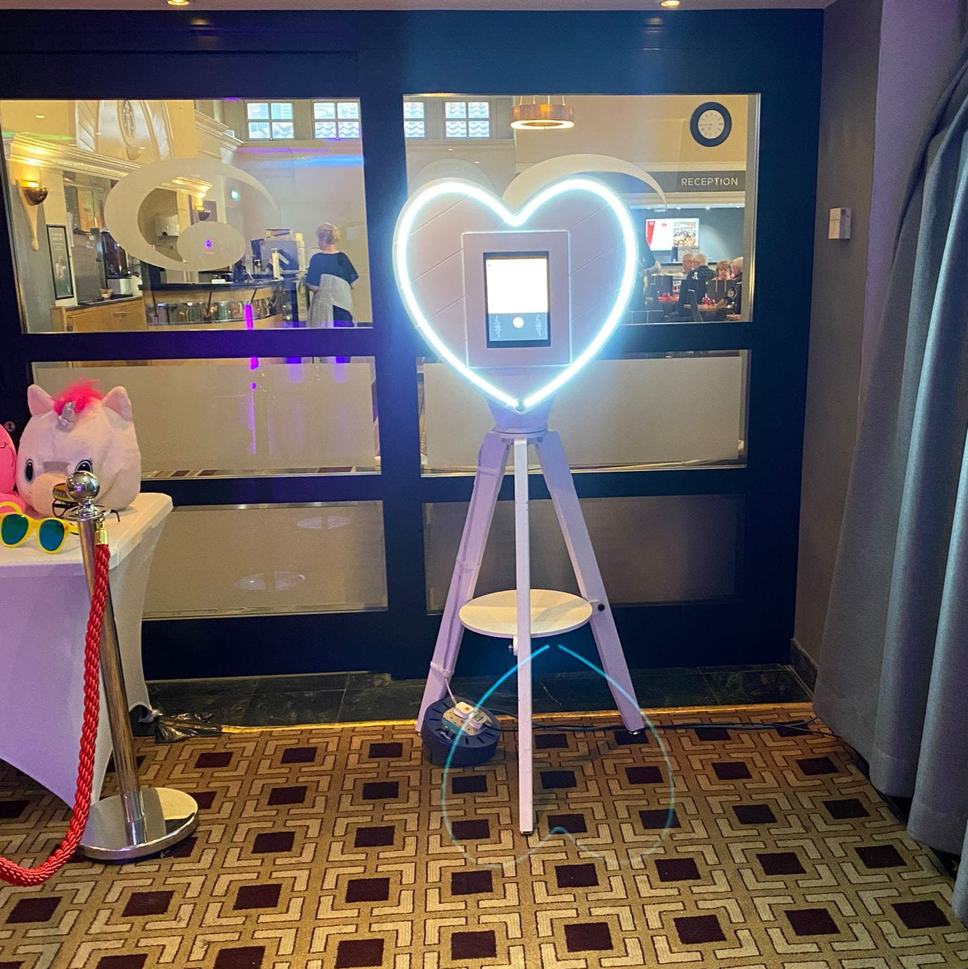 This heart photo booth hire includes a high-spec digital camera with an attractive LCD heart design, ideal for all kinds of parties and events. Additional decorations and backdrops can be used to adapt the design to a specific season or theme.